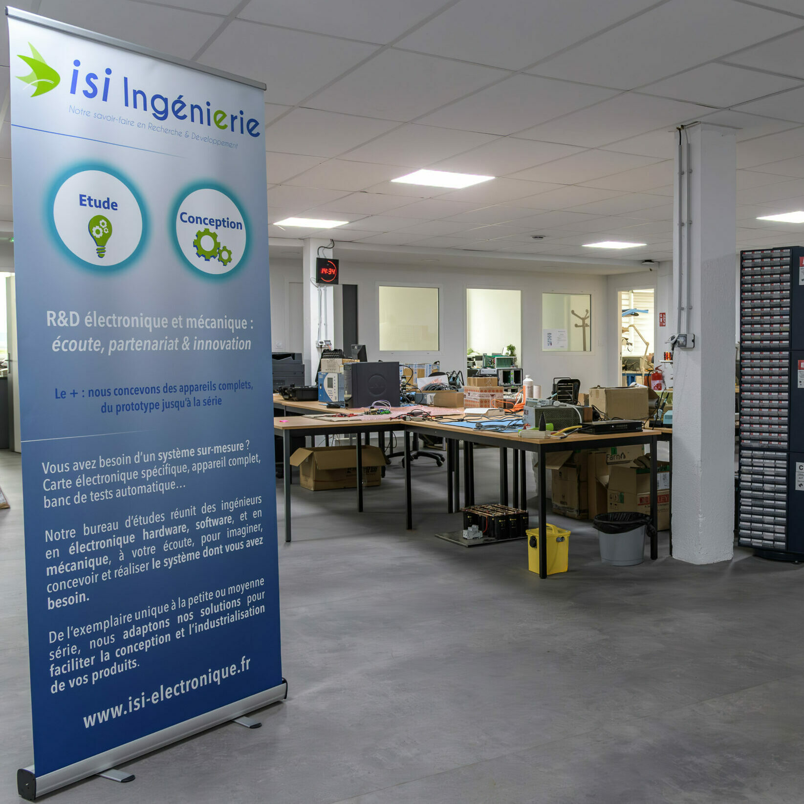 Installée dans ses nouveaux locaux à Lempdes (63) depuis 2024, ISI Electronique bénéficie d’une surface de 2500 m2 lui permettant d’agencer l’entreprise en différents pôles.
