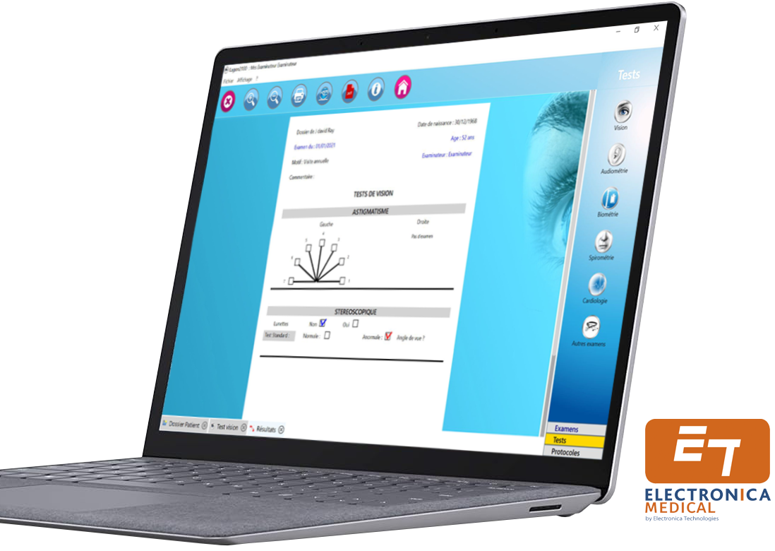 - Gestion automatique du fichier patients et des tests de vision